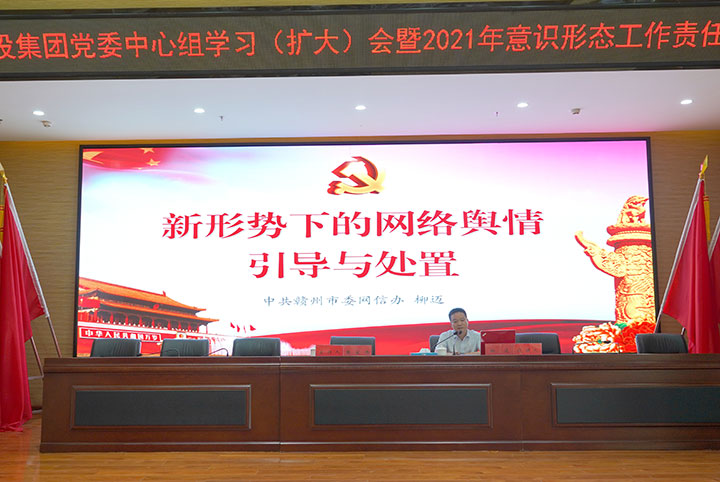 6月22日下午,贛州城投集團(tuán)舉辦黨委中心組學(xué)習(xí)(擴(kuò)大)會(huì)暨2021年意識(shí)形態(tài)工作責(zé)任制專題培訓(xùn)。市委網(wǎng)信辦副主任柳邁應(yīng)邀授課,集團(tuán)黨委副書記黃家偉主持并講話,集團(tuán)全體高管出席,各黨支部(黨總支)書記及支委成員、支部宣傳干事,各部門、子公司負(fù)責(zé)人及信息員等聆聽學(xué)習(xí)。